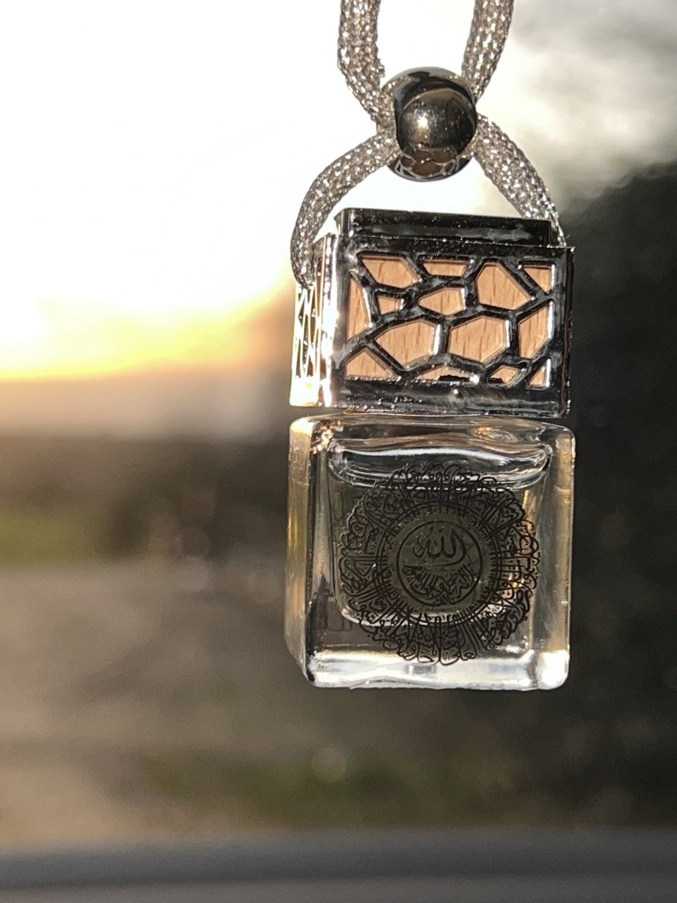 Our beautiful car diffusers features Ayat-ul Kursi calligraphy on the front and a dua for travel on the back. Each diffuser is filled with a beautiful fragrance which can last up to 3 months, with careful use, dispersing a subtle aroma throughout the cabin.